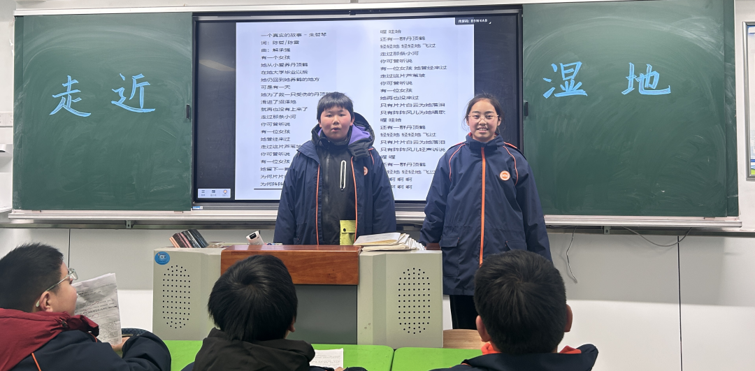“芦苇摇,鹤声扬,湿地是我家……”与音乐老师跨界合作,将湿地故事谱成旋律,创作专属盐城湿地的主题歌曲。同学们在社团活动中学唱传唱,用清澈的歌声描绘湿地的生机与美好,用激昂的旋律呼吁大家珍惜生态资源。课间、校园广播、文化艺术节舞台,处处都能听见湿地的“声音名片”,让保护理念随歌声深入人心。