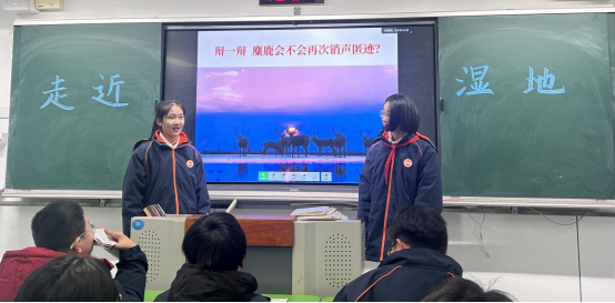 “湿地保护与经济发展能否双赢?”“人工干预是否有利于湿地生态平衡?”“湿地动物会不会再次销声匿迹?”同学们围绕湿地保护的热点话题展开激烈思辨。查阅资料、组建战队、唇枪舌剑,在思想的碰撞中深化对湿地生态价值的认知,学会用科学视角分析生态问题,培养理性思考与语言表达能力,在思辨中深化生态保护责任意识。